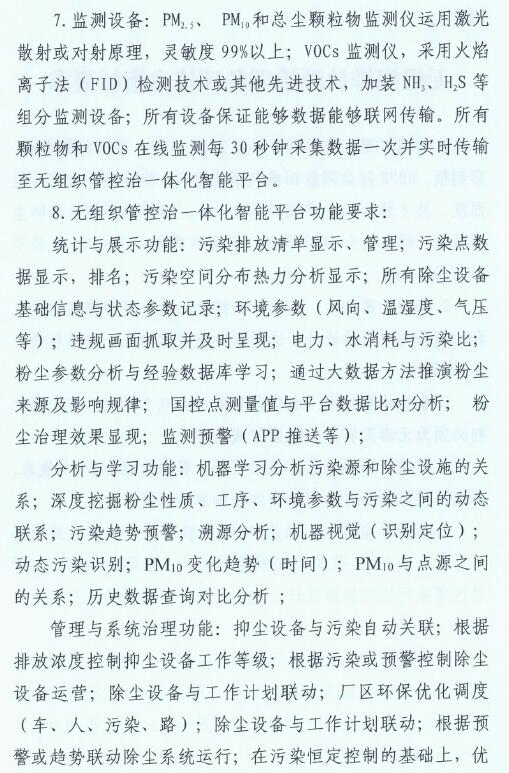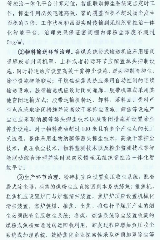 2、2019年10月底前,全市焦化企業全面完成無組織排放治理和監測、無組織排放管、控、治一體化智能平臺建設。