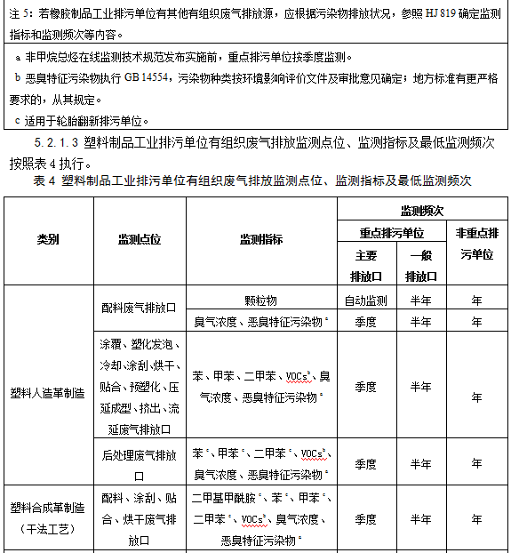 5.2.1.2橡膠制品工業排污單位有組織廢氣排放監測點位、監測指標及最低監測頻次按照表3執行。