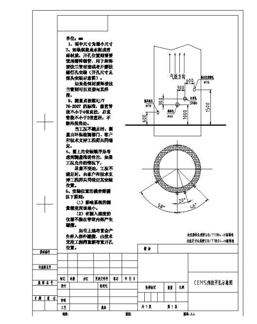 2、開孔的位置位于煙囪直徑的四倍處,開相應(yīng)的4-5個(gè)孔,如圖