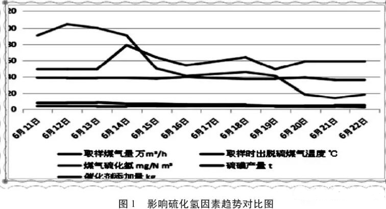 ⑸優(yōu)化脫硫及脫苯系統(tǒng)工藝及操作,如加大脫硫液循環(huán)量、將蒸氨氨氣全部切入脫硫系統(tǒng)、增加催化劑用量、提高脫苯塔頂溫度,降低回爐煤氣H2S和有機(jī)硫含量(圖1)。