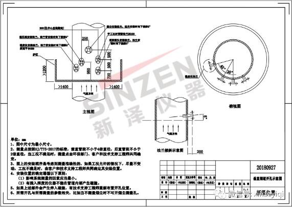 CEMS煙氣在線監(jiān)測設(shè)備的垂直煙囪開孔示意圖