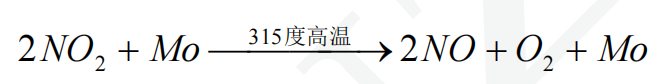 轉化器采用鉬作為催化劑,在315度高溫下,將NO2轉換為NO和02。為其工作原理為: